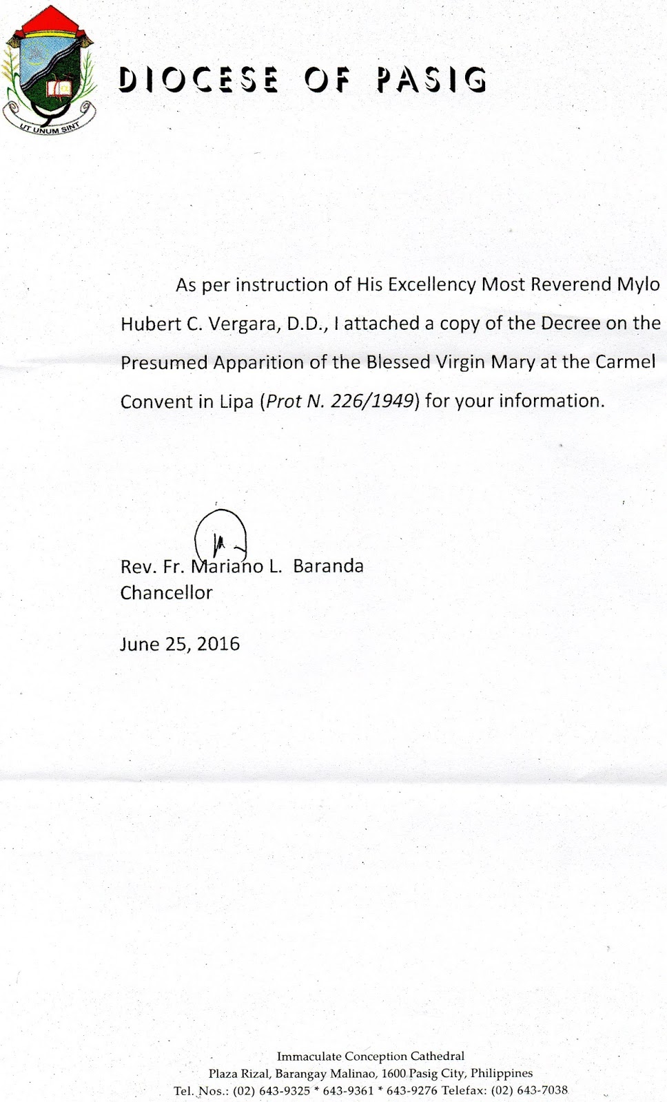 Vatican issues decree on Lipa Apparition Posted by josephdream on June 26, 2016 Get link Facebook X Pinterest Email Other Apps Comments